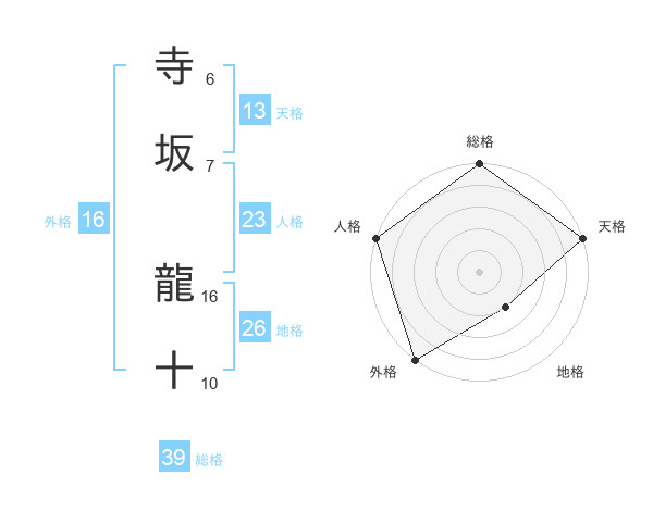 寺坂 龍十さんを姓名の画数から五運を鑑定