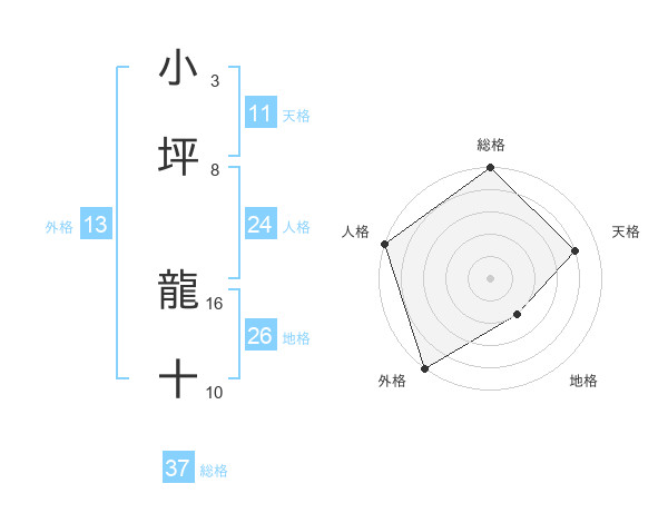 小坪 龍十さんの総格は37画の5点!