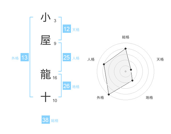 小屋 龍十さんを姓名の画数から五運を鑑定