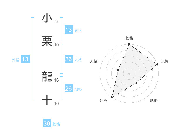 小栗 龍十さんの総格は39画の5点!