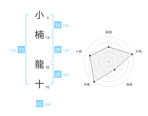 小楠 龍十さんを姓名の画数から五運を鑑定