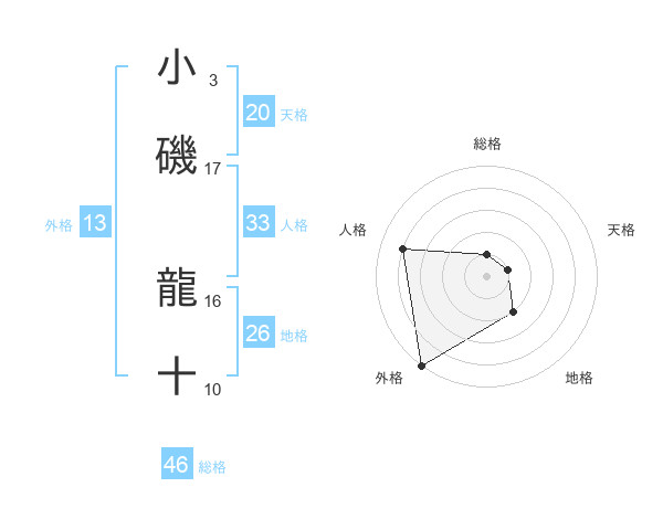小磯 龍十さんの外格は13画の5点!