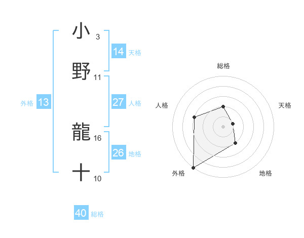 小野 龍十さんの外格は13画の5点!
