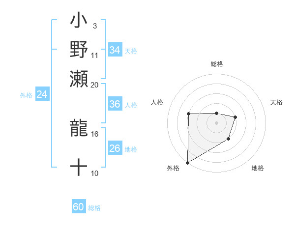 小野瀬 龍十さんを姓名の画数から五運を鑑定