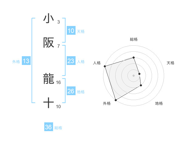小阪 龍十さんを姓名の画数から五運を鑑定
