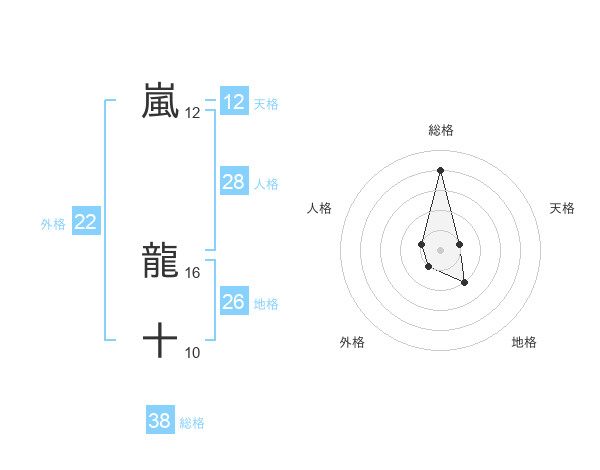 嵐 龍十さんの総格は38画の4点!
