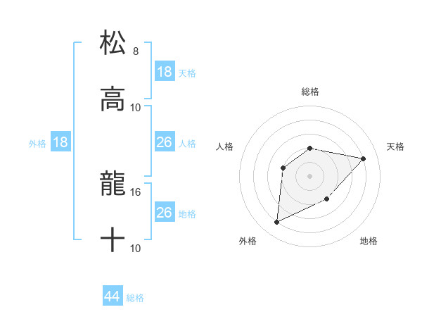 松高 龍十さんの総格は44画の2点!