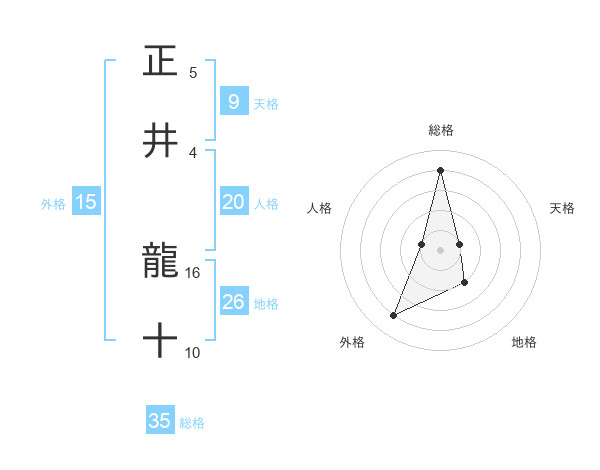 正井 龍十さんの総格は35画の4点!
