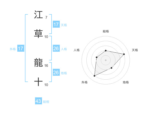 江草 龍十さんの総格は43画の2点!