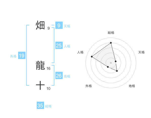 畑 龍十さんの総格は35画の4点!