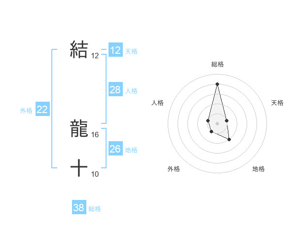 結 龍十さんの外格は22画の1点!