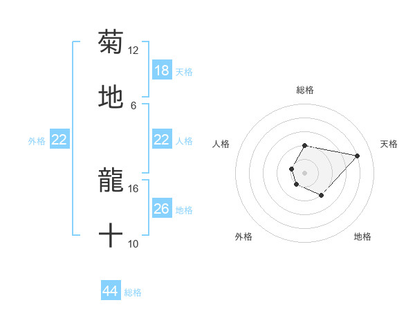 菊地 龍十さんを姓名の画数から五運を鑑定