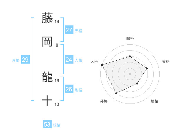 藤岡 龍十さんの総格は53画の3点!