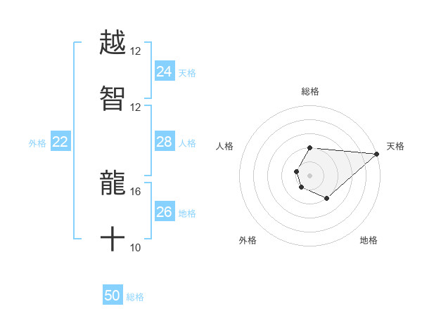 越智 龍十さんの天格は24画の5点!