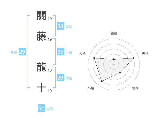 關藤 龍十さんの天格は38画の4点!
