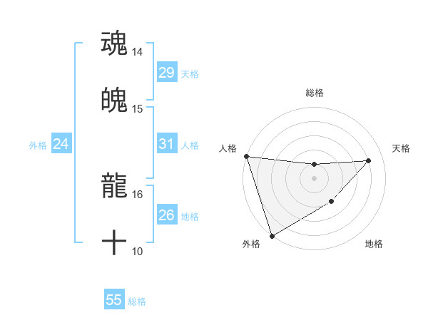 魂魄 龍十さんを姓名の画数から五運を鑑定