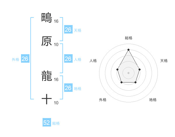 鴫原 龍十さんの総格は52画の4点!