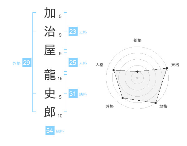加治屋 龍史郎さんの天格は23画の5点