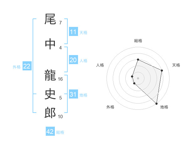 尾中 龍史郎さんを姓名の画数から五運を鑑定