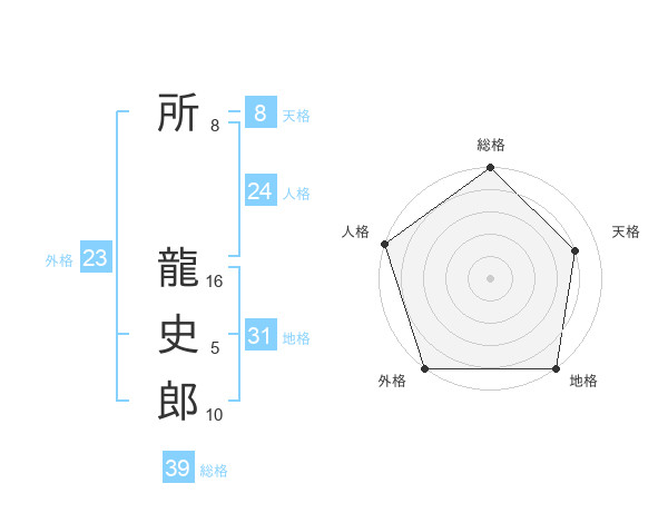 所 龍史郎さんの外格は23画の5点!