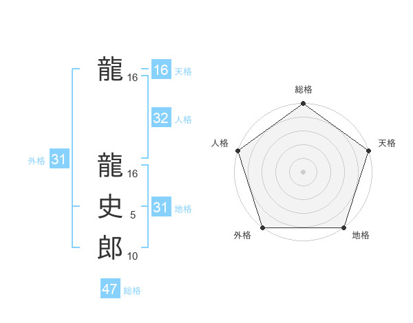 龍 龍史郎さんの地格は31画の5点!