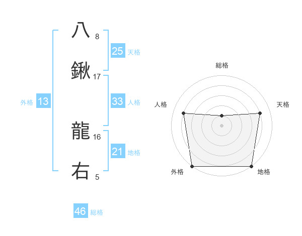 八鍬 龍右さんを姓名の画数から五運を鑑定