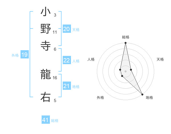 小野寺 龍右さんの総格は41画の5点!