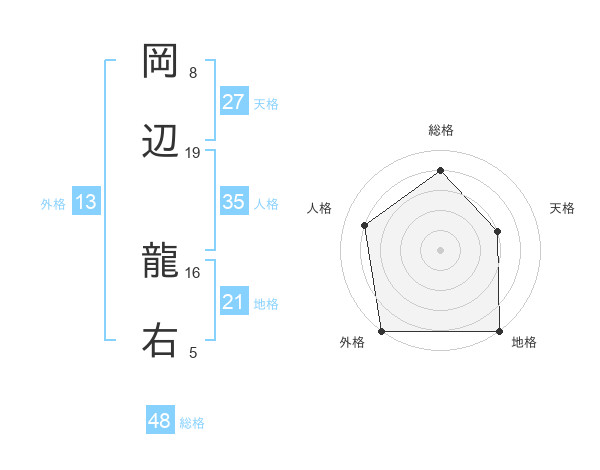 岡辺 龍右さんの外格は13画の5点!