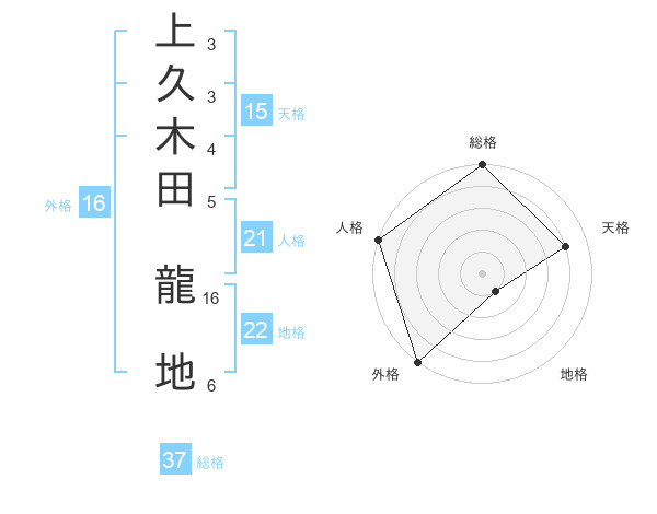 上久木田 龍地さんを姓名の画数から五運を鑑定