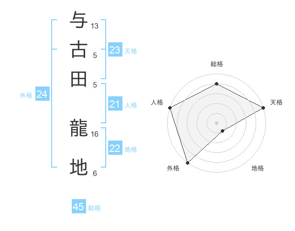 与古田 龍地さんを姓名の画数から五運を鑑定