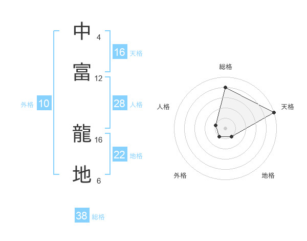 中富 龍地さんの総格は38画の4点!