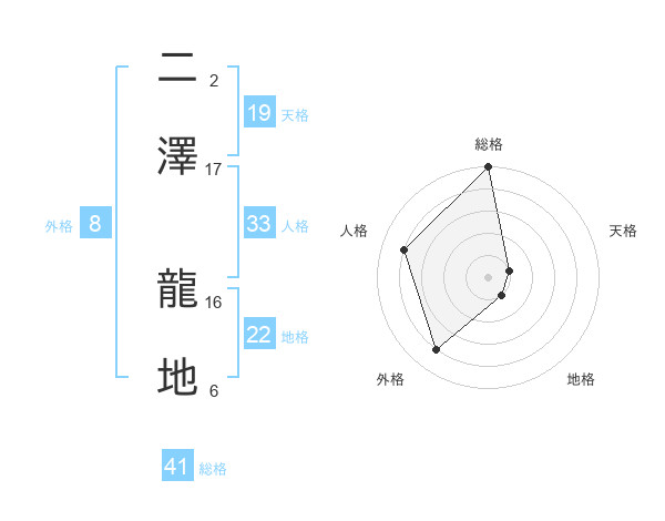 二澤 龍地さんを姓名の画数から五運を鑑定