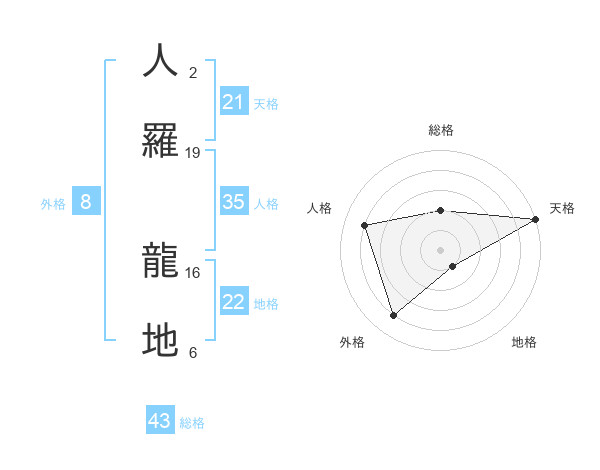 人羅 龍地さんを姓名の画数から五運を鑑定