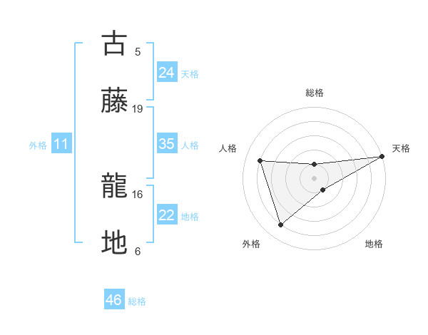 古藤 龍地さんの総格は46画の1点!