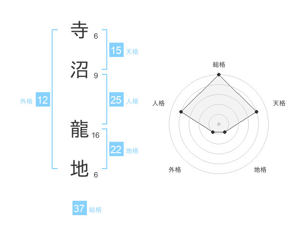 寺沼 龍地さんを姓名の画数から五運を鑑定