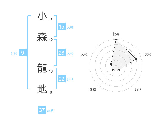 小森 龍地さんの総格は37画の5点!