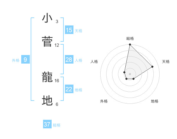 小菅 龍地さんの総格は37画の5点!