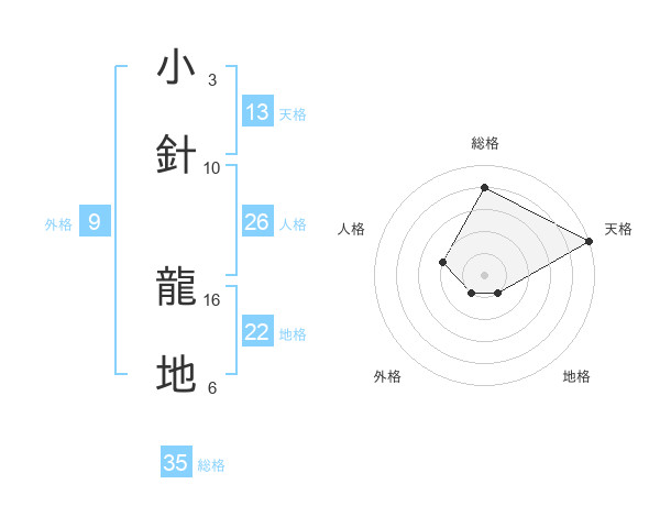 小針 龍地さんの総格は35画の4点!