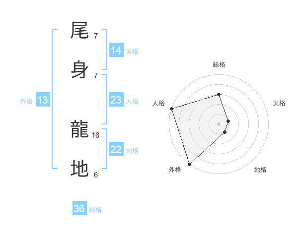 尾身 龍地さんの総格は36画の3点!