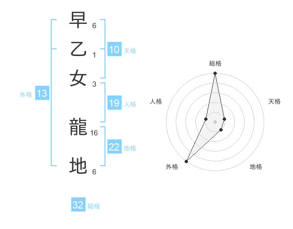 早乙女 龍地さんを姓名の画数から五運を鑑定