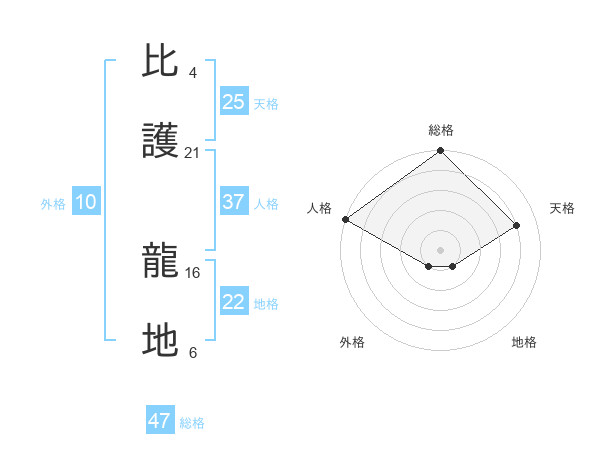 比護 龍地さんの総格は47画の5点!