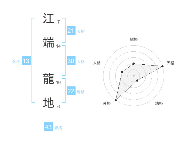 江端 龍地さんの総格は43画の2点!