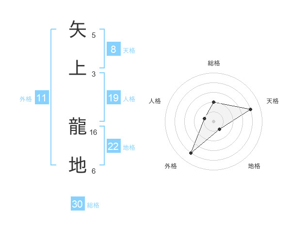 矢上 龍地さんの総格は30画の2点!