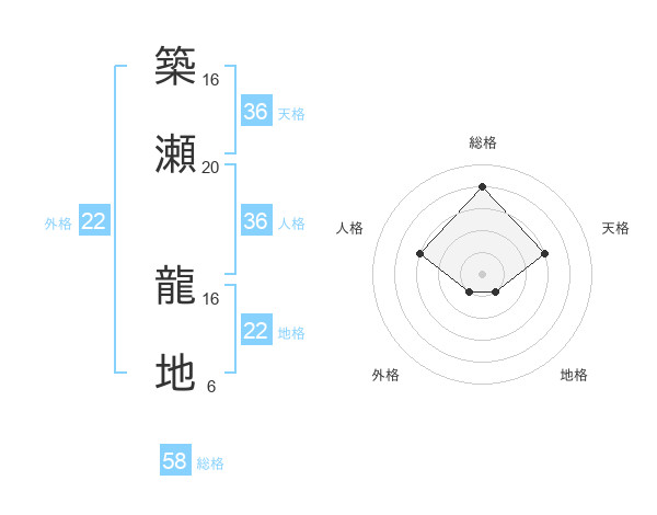 築瀬 龍地さんを姓名の画数から五運を鑑定