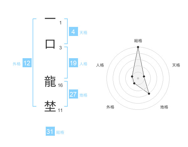 一口 龍埜さんの総格は31画の5点!