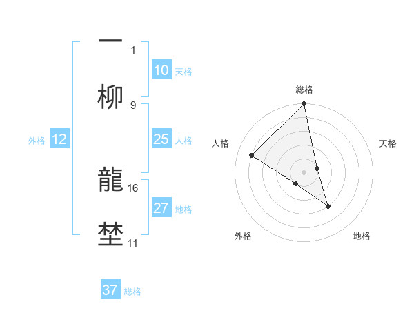 一柳 龍埜さんの総格は37画の5点!