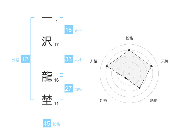 一沢 龍埜さんの総格は45画の4点!