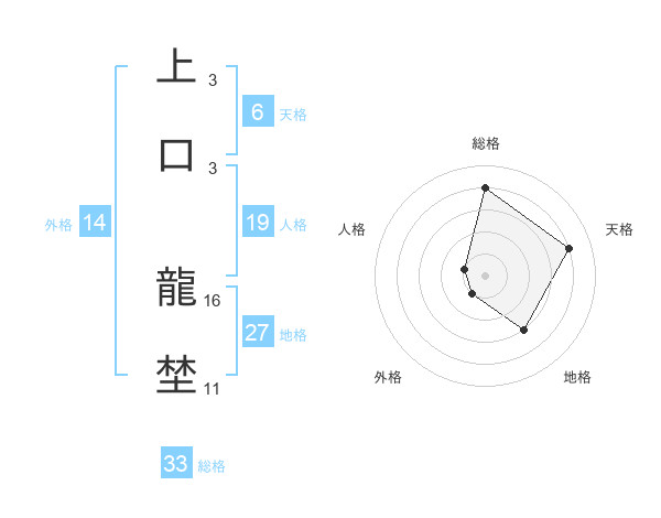 上口 龍埜さんを姓名の画数から五運を鑑定