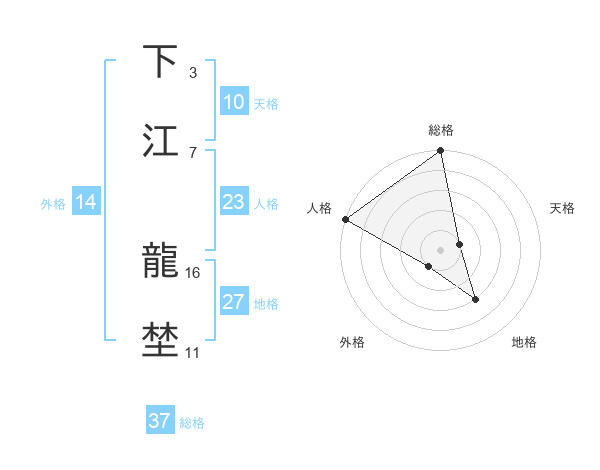 下江 龍埜さんを姓名の画数から五運を鑑定