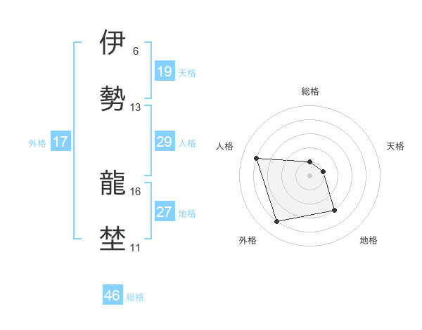 伊勢 龍埜さんを姓名の画数から五運を鑑定